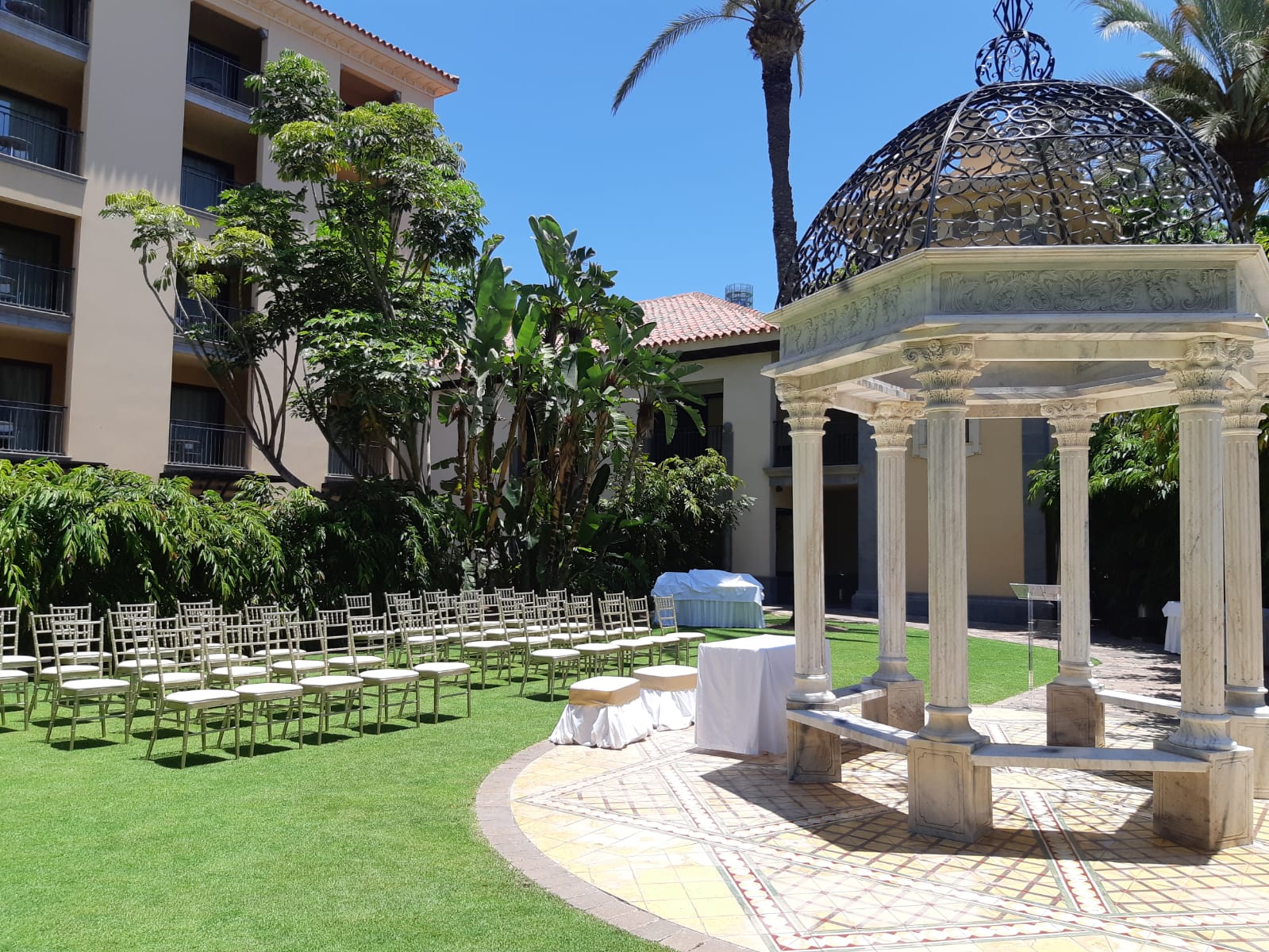 Mit einem frühlingshaften Klima, das Sie das ganze Jahr über willkommen heißt, und einer unvergleichlichen Küstenlandschaft ist Gran Canaria das perfekte Ziel für romantische Hochzeiten. Entdecken Sie tropische Hochzeitsgärten und Terrassen mit Meerblick. Unsere Hotels in Meloneras bieten vielseitige Räumlichkeiten und geräumige und funktionelle Hochzeitssäle für unvergessliche Zeremonien und Empfänge. Entdecken Sie, was wir für Ihre Hochzeitsfeierlichkeiten auf Gran Canaria vorbereitet haben.