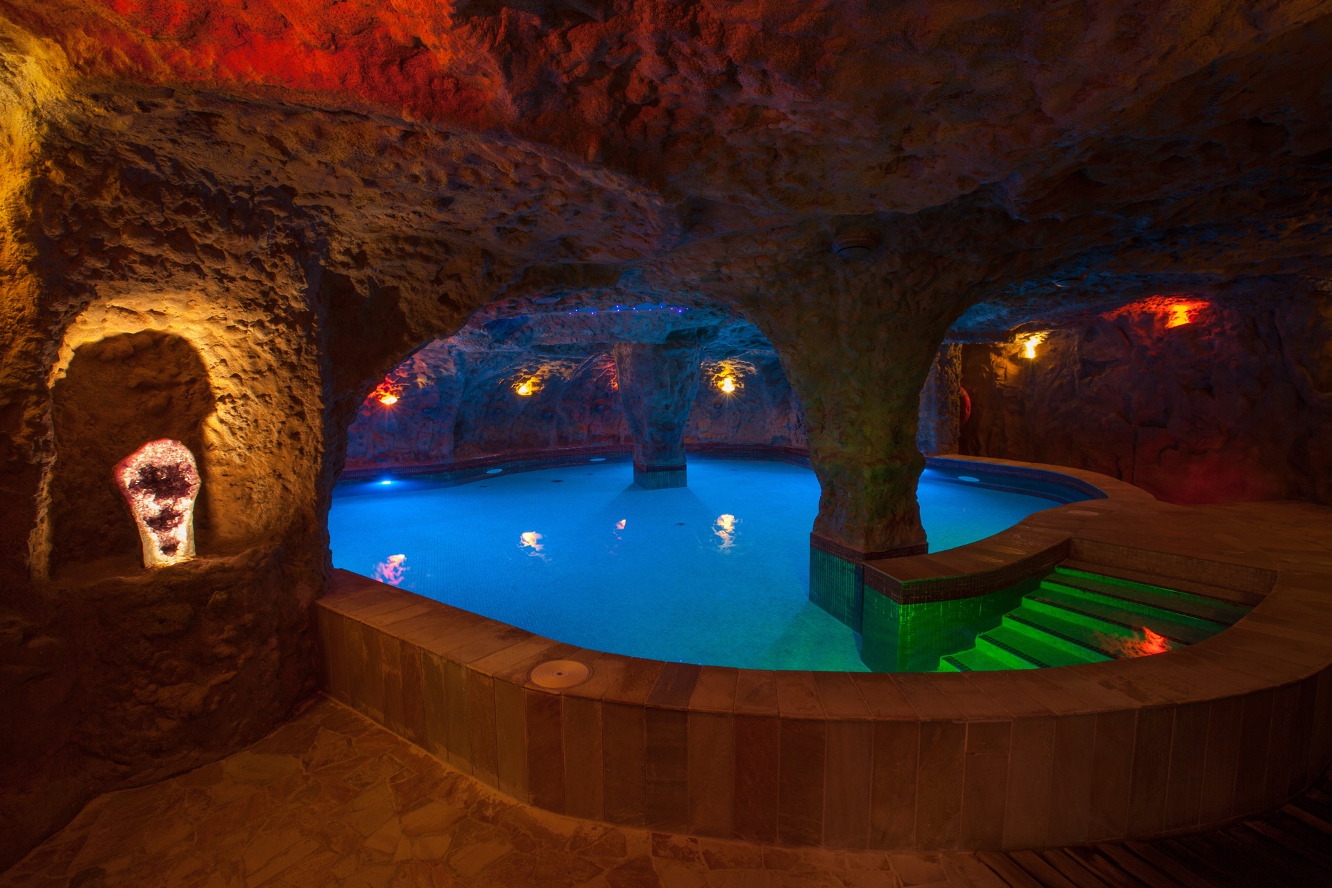 • Wir empfehlen, die Augen in unserem Pool mit tragendem Wasser aufgrund seines hohen Salzgehaltes nicht zu öffnen.